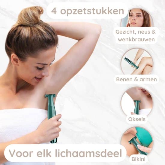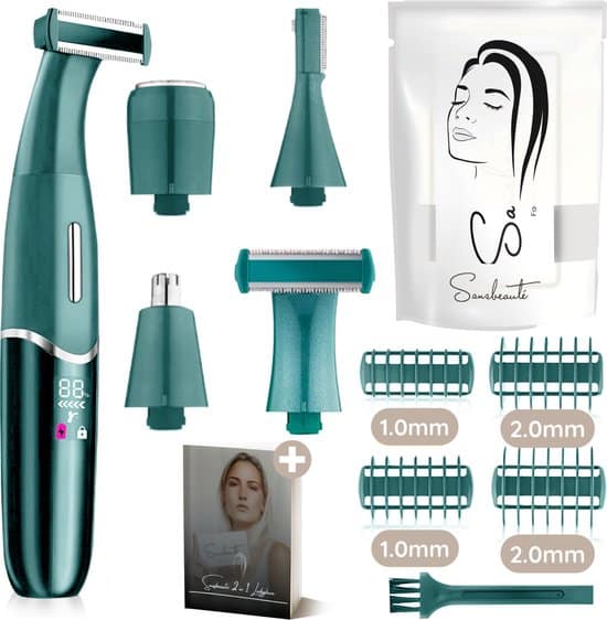 Heb je genoeg van ongewenst haar op je gezicht en lichaam? Ben je de pijnlijke scheerapparaten helemaal zat? Maak kennis met de Sansbeauté® 4-in-1 Bikinitrimmer Classic Green – de ultieme oplossing voor een gladde huid. Met vier verschillende scheerkoppen kun je nu elk haartje op je gezicht en lichaam pijnloos verwijderen. En dankzij de vier opzetstukken heb je alles in één handige set, wat het ook nog eens financieel aantrekkelijk maakt! Met de LED-icoontjes op het apparaat kun je gemakkelijk aflezen wanneer je moet reinigen en opladen. En het wordt nog beter! De makkelijk te verwisselen opzetstukken zijn volledig waterproof, waardoor je het op een natte huid of scheerschuim kunt gebruiken en snel kunt schoonmaken onder de kraan. Het is simpelweg onmisbaar in noodsituaties! Maar dat is nog niet alles. Als je nu bestelt, ontvang je een exclusief e-book met waardevolle tips, zodat je het product optimaal kunt benutten en de beste resultaten kunt behalen. Dus waar wacht je nog op? Bestel vandaag nog de Sansbeauté® 4-in-1 bikinitrimmer en geniet van een gladde, haarvrije huid zonder enige moeite!
