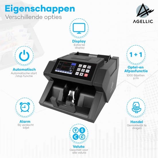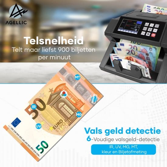 2 beoordelingen voor Agellic® Geldtelmachine – Biljettelmachine – 6-voudige vals geld detectie – 900 biljetten per minuut – Geldteller – Valsgelddetector – Incl….
