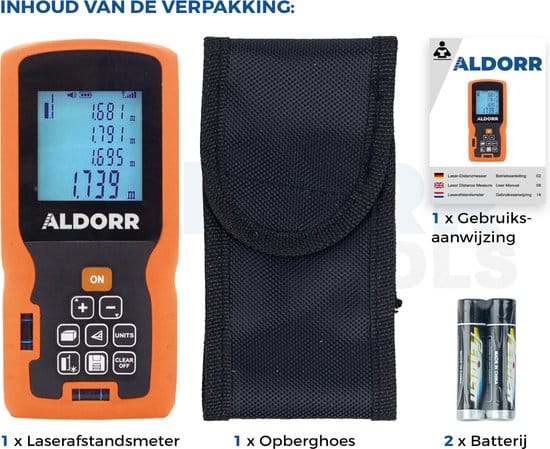 De laserafstandsmeter is een must-have voor iedere klusser! Voor zowel de doe-het-zelver als de professional. De laserafstandsmeter meet eenvoudig en snel afstanden, oppervlakten en volumes. De meter heeft een bereik tot wel 50 meter! De laserafstandsmeter van ALDORR is CE-gecertificeerd en wordt geleverd inclusief batterijen.