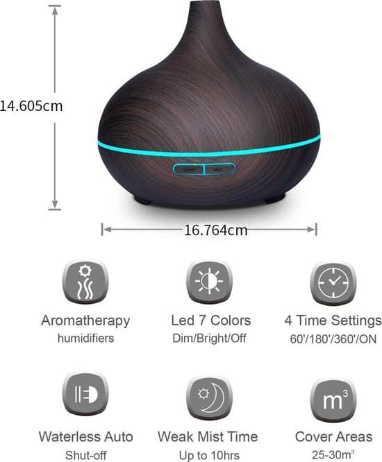 De Aroma diffuser heeft een moderne zen uitstraling door zijn houtnerf structuur met echte hout look. Deze diffuser staat prachtig in het interieur en is ideaal als geschenk voor je vrienden, familie, geliefden of iedereen die van aroma olie therapie houdt.