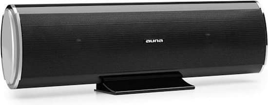 Met auna´s Areal 652 5.1 kanaals surround system zit u midden in de bioscoop en beleeft u film, muziek en games als nooit tevoren!Technisch middelpunt is de actieve subwoofer, die de vijf satellietluidsprekers dirigeert en aandrijft. De sidefiring bassreflex subwoofer produceert in samenspel met de satellietluidsprekers een fraai, ruimtevullend totaalgeluid met 5x 15 Watt en 1x 70 Watt RMS vermogen.Middels de aan de voorzijde ingebouwde USB poort communiceert de surround installatie met draagbare gegevensdragers zoals USB sticks en MP3 spelers terwijl u via de SD sleuf opslagkaarten met MP3 titels kunt afspelen. De bluetooth interface maakt een draadloze streaming van muziek via smartphone, tablet en laptop mogelijk. Via de AUX ingang kunnen diverse audio-apparaten – computer, CD speler – met de auna Areal 652 worden verbonden. De 5.1 cinch input neemt de surround sound van DVD spelers en Blu-Ray spelers over.De speaker connection vindt plaats door middel van kabels en is, dankzij het aansluitingsdiagram op de main unit en de afstandsbediening, kinderlijk eenvoudig. Menu en klankinstellingen kunt u via de meegeleverde afstandsbediening aanpassen.Optisch overtuigt het surround geluidssysteem door het totale, elegante design dat zich moeiteloos naar de meeste inrichtingsstijlen voegt. Daarnaast is het display van de main unit onopvallend in het front van de behuizing geïntegreerd. De satellietluidsprekers zijn voorzien van een hoogglanzende, zwarte behuizing en een sokkel.Met de auna Areal Bar 652 ervaart u het echte bioscoopgevoel in uw woonkamer!