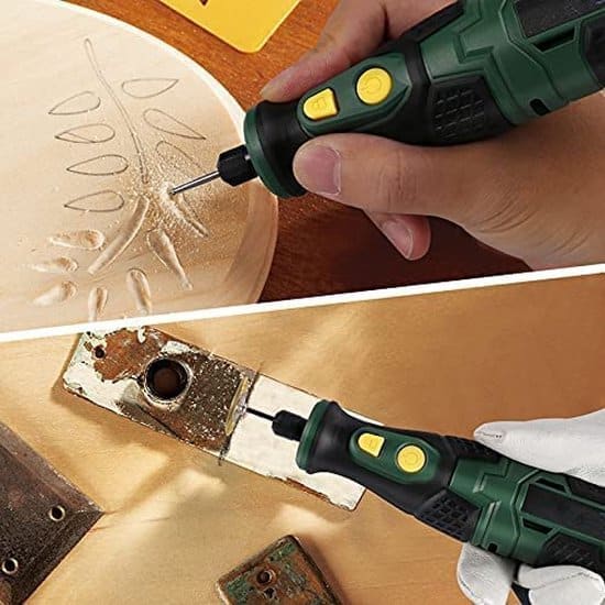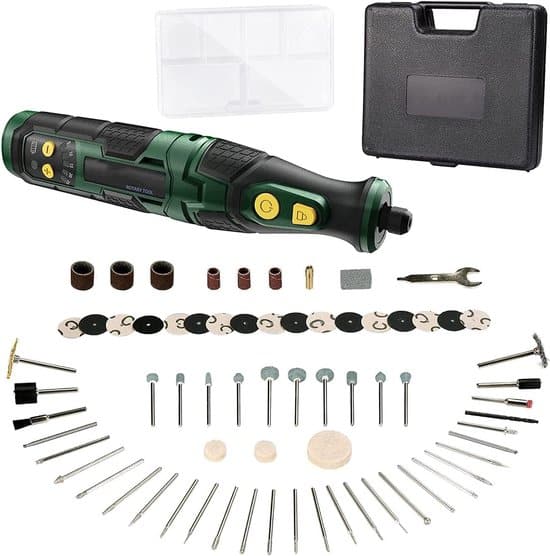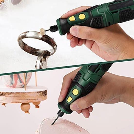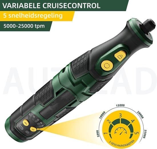 2400 mAh batterijcapaciteit. 5 instelbare snelheden: 5000 ~ 25000 RPM. U kunt de gewenste snelheid perfect afstemmen op uw project, zoals: B. Graveren, reinigen, polijsten, frezen, enz.