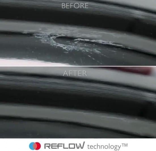 Reflow is ontwikkeld om deze onvolkomenheden in het lakwerk te verhelpen. De door water geactiveerde thermische transferverpakkingen zijn ontworpen om te verwarmen tot een specifieke temperatuur die ze gedurende een bepaalde tijd behouden om de optimale omstandigheden te creëren waarin de verf de door de uitwerpselen van de vogels veroorzaakte etsen verzacht, opnieuw instroomt en vult. Naarmate het pakket afkoelt, wordt het lakwerk gereset, waardoor het getroffen gebied effectief wordt genezen en het vogelpatroon wordt verwijderd.