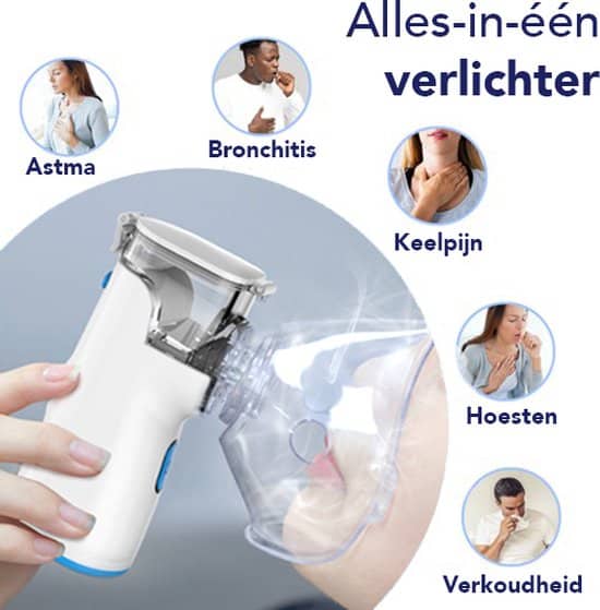 De draagbare vernevelaar opent je luchtwegen waardoor klachten van verkoudheid, astma, keelpijn, koorts en andere luchtwegklachten zullen verminderen of in het beste geval zelfs verdwijnen. Ook zullen water en medicijnen beter geabsorbeerd worden door de vernevelaar, ideaal dus!