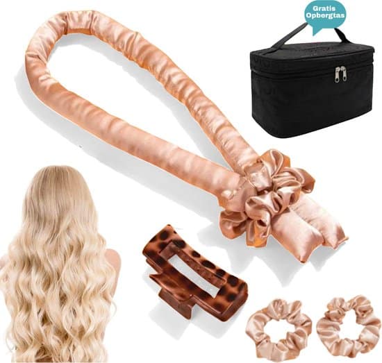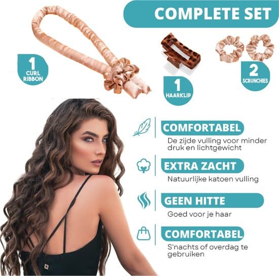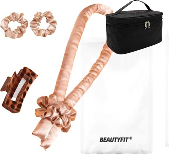 Krijg nu prachtige krullen zonder haarbeschadiging met de champagne kleurige Heatless Curls Haarrollers van Beautyfit. De originele haarrollers set is een nieuwe manier om je haar te krullen zonder enige warmte! De Curling Ribbon helpt je om ’s nachts zonder hitte krullen te krijgen en is zeer gemakkelijk in gebruik. Hij is gemaakt van zijde wat zorgt voor meer glans. Ook helpt deze krulspelden tegen het afbreken en pluizigheid van het haar. Een echte Musthave dus voor mooie krullen!