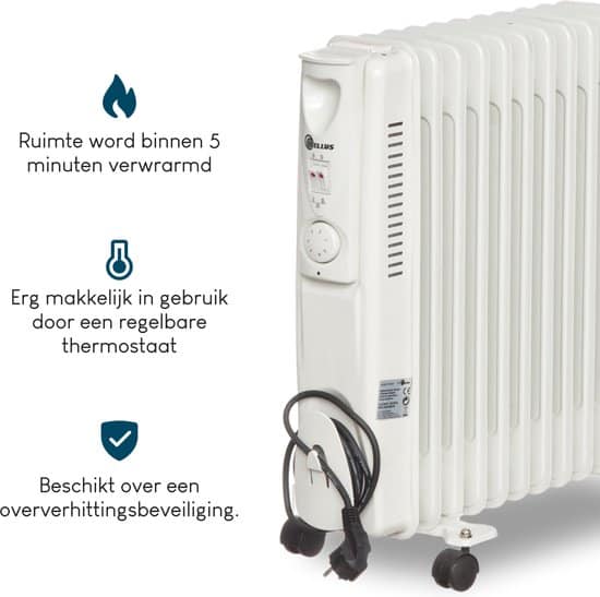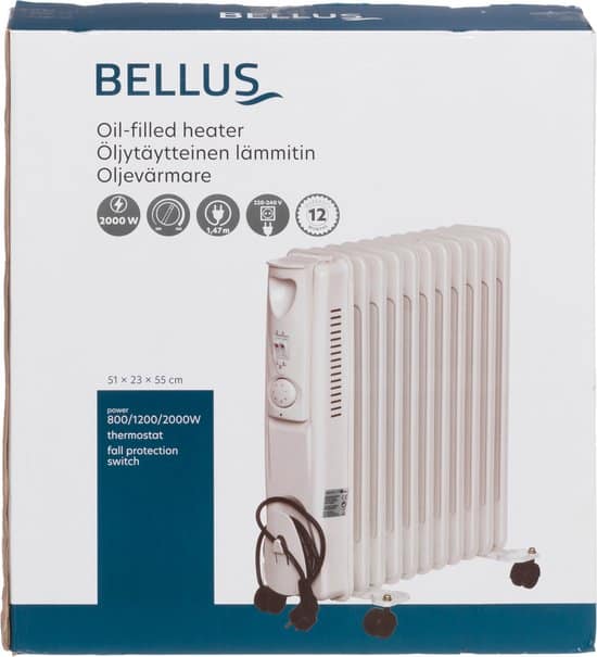 De Bellus elektrische olieradiator is een ideaal product als bijverwarming voor in de koude winter. De innovatieve olieradiator op wieltjes zorgt ervoor dat je de olieradiator erg makkelijk kan verplaatsen. Met een keuzeoptie voor vermogen van 800, 1200, of 2000 Watt zorgt de radiator ervoor dat je er lekker warm bij zit in de winter. Ook is het een energiezuinig product wat aantrekkelijk is gezien de hoge gas prijzen.