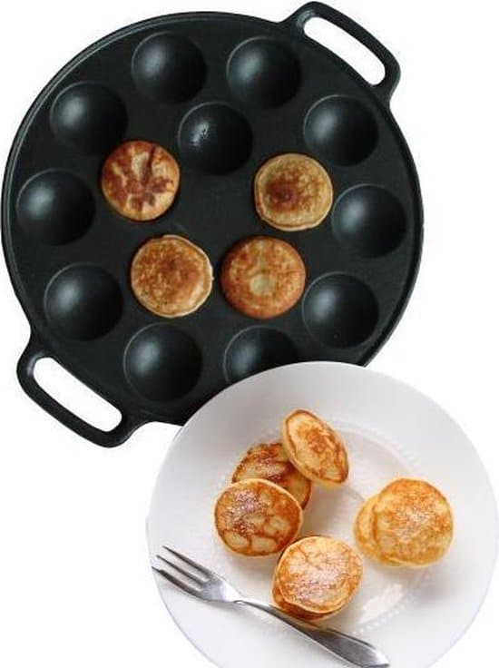 Gietijzeren poffertjespan deluxe voor het bakken van 19 heerlijke poffertjes.