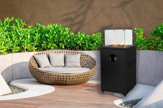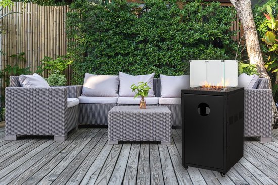 Met deze decoratieve patio terrasverwarmer van Blooboost laat je de zomer langer duren en kun je het hele jaar door genieten van je tuin en terras. De verwarmer werkt op propaangas en heeft een instelbaar vermogen van 8000W. De heater is eenvoudig verrijdbaar dankzij de wieltjes. De glazen stenen worden meegeleverd en voegen een extra decoratief element toe aan deze terrasheater.