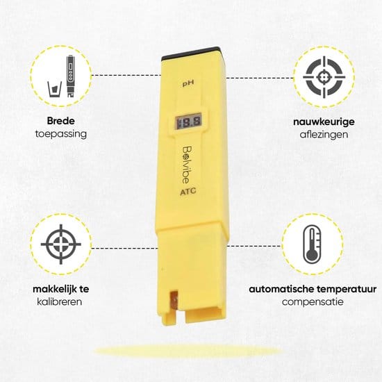 De Bolvibe pH meter is dé oplossing voor het meten van de pH-waarde in water en grond. Hiermee kun je eenvoudig en nauwkeurig de zuurgraad bepalen, zodat je de gezondheid van je planten en het water kunt optimaliseren. Met deze pH tester krijg je direct inzicht in de kwaliteit van je water en grond, zodat je gericht kunt bijsturen waar nodig.