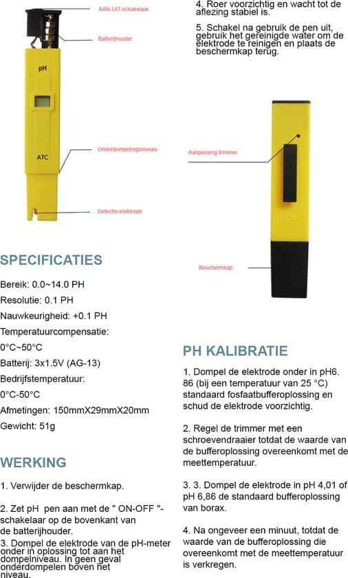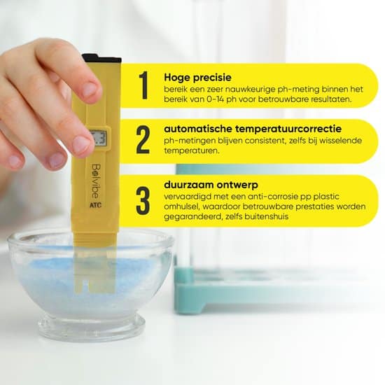 Dankzij het compacte formaat en het lichte gewicht is de Bolvibe pH meter perfect om overal mee naartoe te nemen. Of je nu je tuin aan het verzorgen bent of op reis bent, met deze water pH meter kun je altijd en overal de pH-waarde meten. Zo kun je direct actie ondernemen om de kwaliteit van je water te verbeteren en je planten gezond te houden.