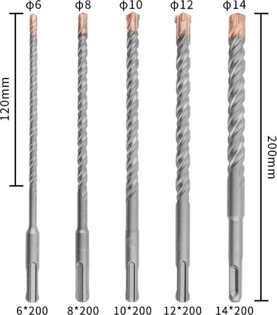 | Verpakkingsinhoud | 1x boor 6x200mm 1x boor 8x200mm 1x boor 10x200mm 1x boor 12x200mm 1x boor 14x200mm |