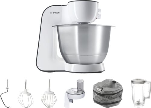 De Bosch MUM52120 Styline is met zijn iconische uiterlijk hét instapmodel van Bosch keukenmachines. Met een vermogen van 700 watt is de keukenmixer geschikt voor het mixen van beslag en het kneden van licht deeg. Zo kneed je met gemak koekjesdeeg, maar is brooddeeg kneden iets teveel gevraagd….
