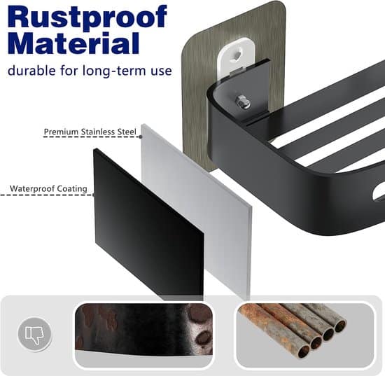 12 beoordelingen voor BOTC Doucherek – 2 laags Doucherek zonder boren – RVS – Zelfklevend – Doucherek Hangend – Badkamerrek – Zwart