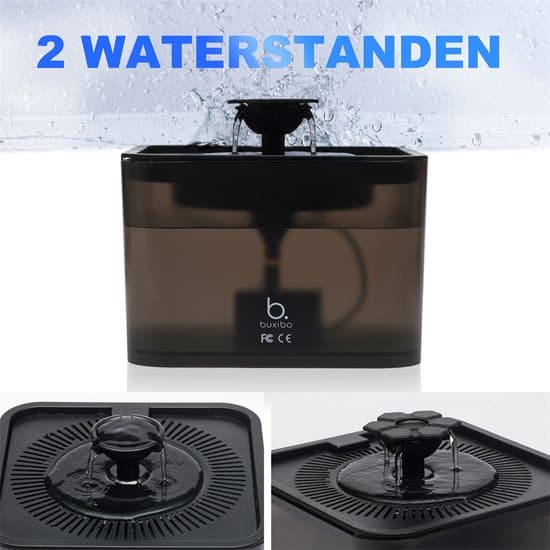 De Buxibo drinkfontein beschikt over 2 verschillende uitlopen en kan zo worden afgesteld op de wensen van jouw huisdier. De bloemen fontein geeft een stroom die ideaal voor katten is. De waterval en fontein geeft ook een bubbelend effect aan het water en is ideaal voor honden. Ook is de fontein geschikt voor de iets voorzichtigere honden en katten of knaagdieren. Door de verschillende standen worden de huisdieren ook nog eens geprikkeld om te drinken.