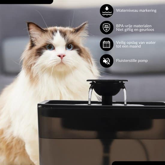 Deze drinkfontein van Buxibo is geschikt voor katten en honden van (middel)groot tot klein formaat. De drinkfontein heeft een waterreservoir van 3 liter. Het systeem bestaat uit drie filters en die houden het water schoon en zuurstofrijk. Tot slot maakt de drinkfontein bijna geen geluid, heeft de drinkfontein een laag energieverbruik en is de fontein binnen no-time geinstalleerd.