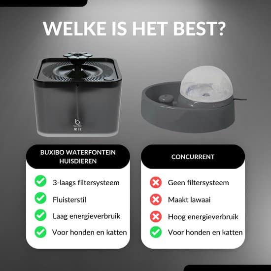 De drinkfontein van Buxibo is uitgerust met een stille pomp, fijn en veilig voor je huisdier. Ook heb je zelf geen last van een irritant zoemend geluid, want de fontein is fluisterstil. Wat ook fijn is, is dat de pomp een zeer laag energieverbruik heeft.