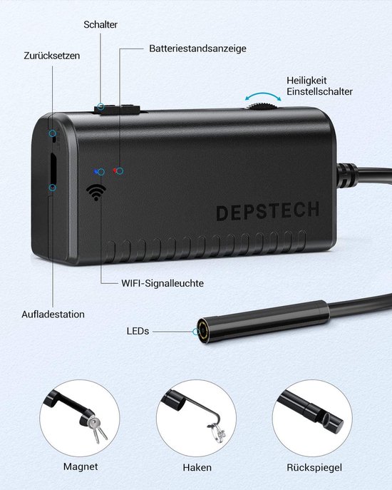 - 【Endoscoopcamera met licht, IP67 en 8,4 mm diameter】: met 6 instelbare led-lichtbronnen en een dunne waterdichte sonde is deze endoscoop geschikt voor verschillende omgevingen, zoals voor zwakke of donkere ruimtes, vochtige of natte ruimtes enz.
