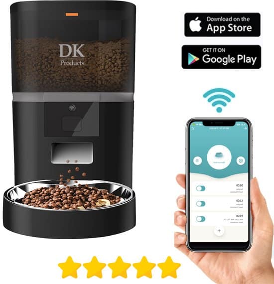 Met deze DKPoducts automatische voerautomaat kun jij je hond of kat voeren waar of wanneer je maar wilt. Je wordt niet meer wakker gemaakt door je kat die vindt dat hij/zij ook om 5 uur in de ochtend moet eten. Dit los je eenvoudig op door deze voerbak door middel van de bijbehorende app zo in te stellen dat het voerschema begint wanneer jij maar wilt.
