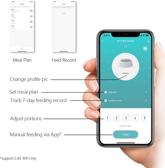 - Stel de automatische voerschema’s in, houd eenvoudig overzicht en zie hoeveel voer voor je hond of kat nog in zijn/haar voerbak zit.