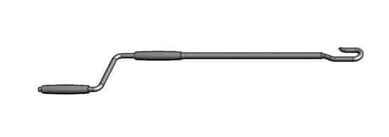 A-kwaliteit, universele metalen slinger voor handbediende zonwering, met haak. Geschikt voor oogwindwerken met ovaal oog. links en rechts draaiend Lengte draaistang, 120 cmOphangveer : 12,5 cm