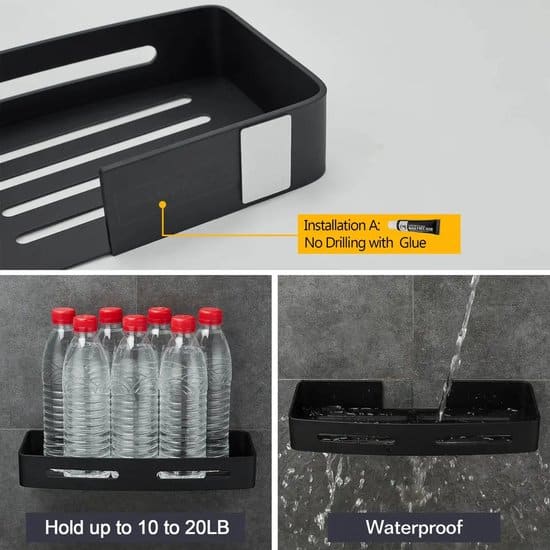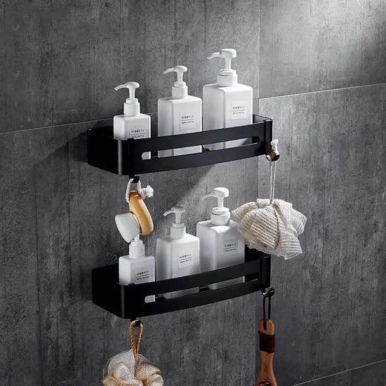 20 beoordelingen voor Dubbele Doucherek Zwart Zonder Boren – Sterkere lijmbasis – Wand Badkamer Rek – Doucherekjes – Incl. schroeven