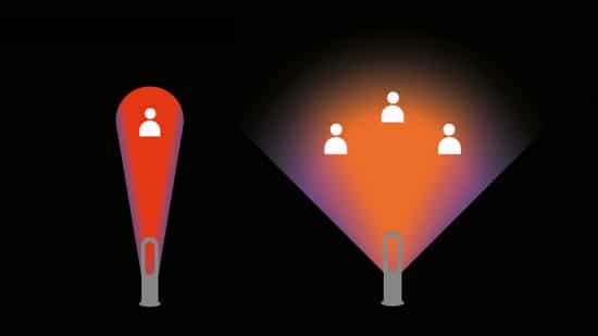 Air Multiplier technologie vermeerdert omringende lucht voor warmteprojectie over grote afstand. De Dyson Hot + Cool verwarmingsventilator verwarmt de hele kamer snel en gelijkmatig.