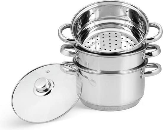 De meest gezonde manier van eten bereiden is koken in stoom. Daardoor blijven waardevolle vitamines en mineralen behouden en ook de kleur van de groenten blijft zoals het hoort. Groenten blijven zacht maar wel beetgaar, vis valt niet uit elkaar. In stoom droogt niets uit en brandt niets aan. Ook het stomen van gare rijst of het met stoom verwarmen van bapao of dim-sum, de gerechten behouden hun intense eigen smaak. De uitstekende warmteoverdracht van waterdamp zorgt ervoor, dat ingrediënten ook van binnen gelijkmatig gaar worden. De Edënbërg stoompan is vervaardigd uit 18/10 roestvrijstaal. De onderste pan is voorzien van een gekapselde sandwich bodem voor snelle warmte geleiding. De handige glasdeksel geeft tijdens het bereiden goed zicht op het stoomproces. De druppeltjes houden het zicht vrij tijdens het stomen.