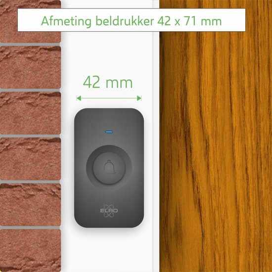 Omdat de deurbel slechts 4 cm breed is past hij makkelijk op iedere buitenpost. De drukker is gemaakt van hoogwaardige kunststof en is IP65 waterdicht. Hierdoor hoeft de deurbel niet persé onder een afdak te hangen, maar kun je hem ook met een gerust hart in de regen laten hangen.