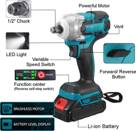 - 520N.M hoog koppel, traploze snelheid verandering schakelaar.