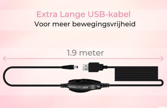 De bijgeleverde USB-kabel heeft een lengte van maar liefst 1.9 meter. Dat betekent dat jij je geen zorgen hoeft te maken over de lengte van de stroomkabel. Je kan gewoon comfortabel op je favoriete plekje je huid en nagels verzorgen.