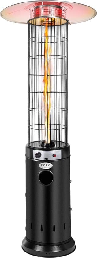 De flame heater is daarnaast voorzien van een omvalbeveiliging, waardoor het toestel automatisch wordt uitgeschakeld wanneer het omvalt of schuin staat. De glazen koker dient enerzijds als beveiliging zodat de vlam afgesloten is wanneer bijvoorbeeld kinderen in de buurt zijn. Anderzijds gaat er dankzij het glas ook veel minder warmte verloren.