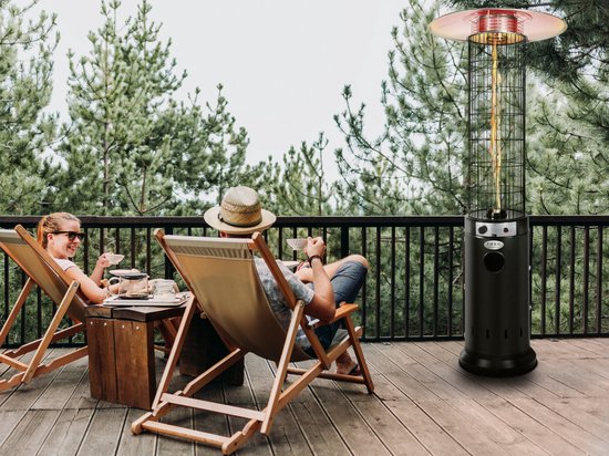 De lounge heater is voorzien van wieltjes zodat je hem makkelijk kan verplaatsen. De terrasverwarmer op gas heeft een vermogen van 13 kW en werkt op propaan of butaan. Onderaan de heater is er plaats voorzien om een gasfles zorgvuldig weg te bergen.