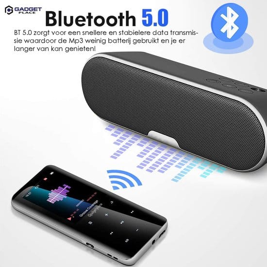 De Gadgetplace mp3-speler met Bluetooth 5.0 biedt snellere gegevensoverdrachtsnelheid (40% toename) en een stabielere verbinding, de verbindingsafstand is ook langer. Naast toevoeging zal het stroomverbruik worden verminderd, toeneemt, toeneemend, toenemen Batterijduur. Geniet van geavanceerde technologie