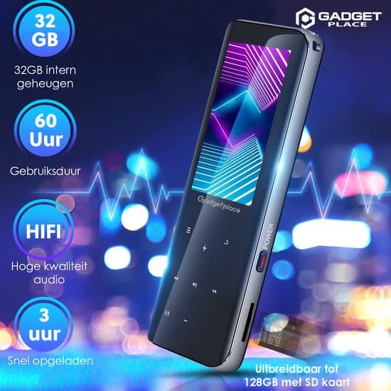 Wil jij net zoals vanouds weer genieten van muziek zonder dat je constant gestoord word door berichtjes op je telefoon? Dan is de Gadgetplace Mp3 speler met 32GB intern geheugen perfect voor jou! De Mp3 speler gaat maarliefst 60 uur mee op een volle batterij en beschikt ook over een spraakrecord en FM radio functie. Dankzij het compacte formaat kun je de mp3 overal mee naar toenemen! Kortom de Gadgetplace mp3 speler is de perfecte uitkomst voor iedereen die lekker wilt genieten van zijn muziek!