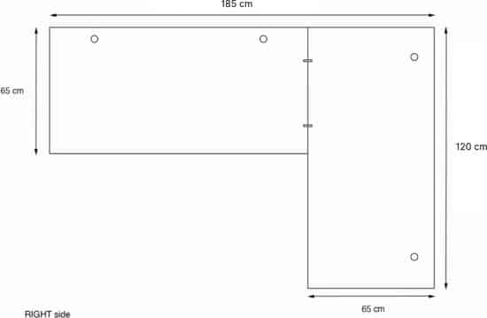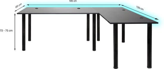 - Hoekvormig bureaublad: Met dit bureau heb je meer ruimte en comfort dan een gewoon bureau. Het hoekvormige bureaublad geeft je meer werkruimte en een betere ergonomie. Het bureaublad heeft een afmeting van 185 x 120 cm en is gemaakt om er meerdere spullen op kwijt te kunnen. Het bureau kan gemakkelijk meerdere monitoren, een pc, een laptop en vele andere apparaten ondersteunen.