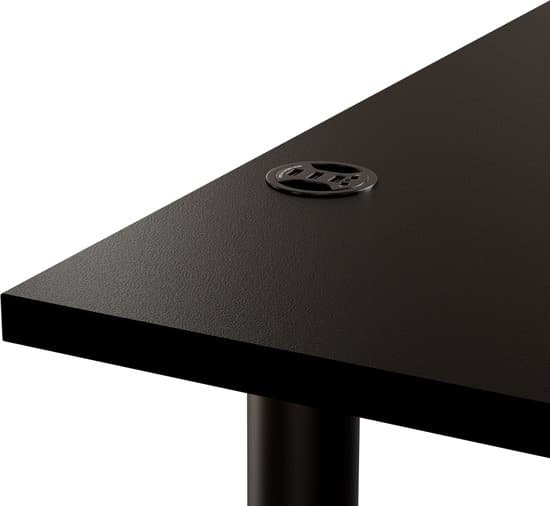- Handige kabeldoorvoer in het werkblad: Niets is zo vervelend als rommelige kabels die in de weg zitten of het zicht belemmeren. Daarom heeft dit bureau 4 handige kabeldoorvoeren in het werkblad, waar je al je kabels netjes kunt wegwerken. Zo heb je een opgeruimd en overzichtelijk bureau, waar je je volledig kunt concentreren op je game.