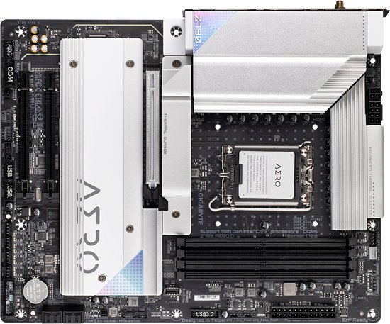 De Gigabyte Z790 AERO G is een ATX moederbord met een Intel Z790 chipset en een LGA1700 socket welke ondersteuning bieden voor de 12e en 13e generatie Intel processoren. Het moederbord beschikt over vier DDR5 DIMM sloten wat ervoor zorgt dat er maximaal 128 GB aan geheugen geïnstalleerd kan worden.