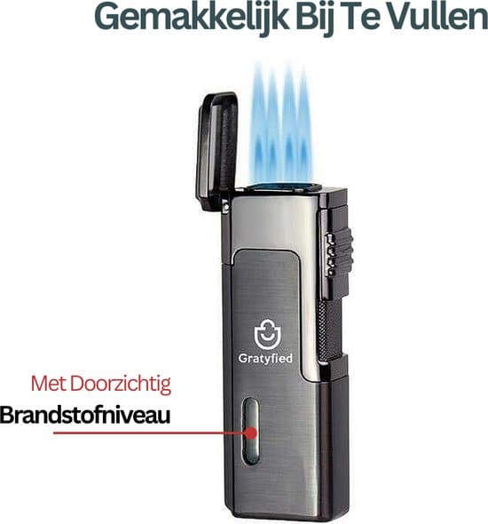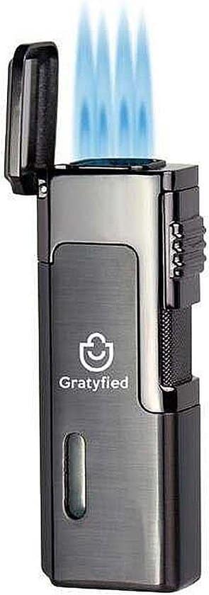 Bent u op zoek naar een luxe en sterke sigarenaansteker? Dan heb u die met deze Gratyfied sigarenaansteker gevonden! De Gratyfied sigarenaansteker is navulbaar, met sigarenknipper en beschikt over een quatro vlam. Daarnaast wordt hij geleverd in een luxe geschenkdoos. Kortom een must-have voor iedere sigarenliefhebber!