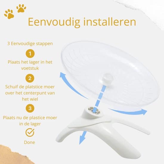 Stabiele Constructie: De solide basis van het wiel verzekert stabiliteit tijdens het gebruik, waardoor je huisdier met vertrouwen en zonder onderbreking kan rennen.