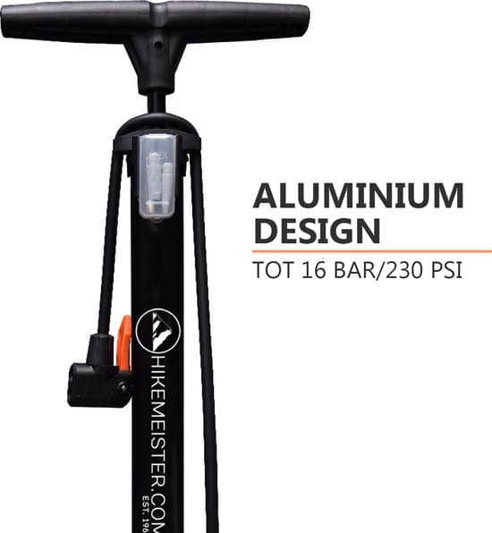 9 beoordelingen voor HikeMeister 16 Bar Staande Fietspomp super pump uitvoering – Met Analoge Drukmeter – Dubbele Ventielkop – Zwart