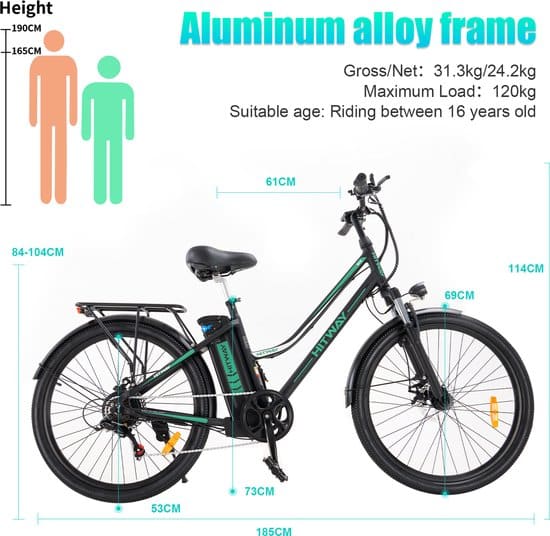 2 beoordelingen voor HITWAY Elektrische Fiets Voor Volwassenen | Ebikes fietsen Stadsfiets | 250W 36V motor | 7 VERSNELLINGSSYSTEEM | 26 inch – Zwart
