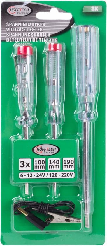 Hofftech Spanningzoeker – Stroomschroevendraaier – 6 & 12 & 24 Volt – 4 Delig