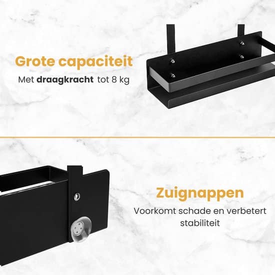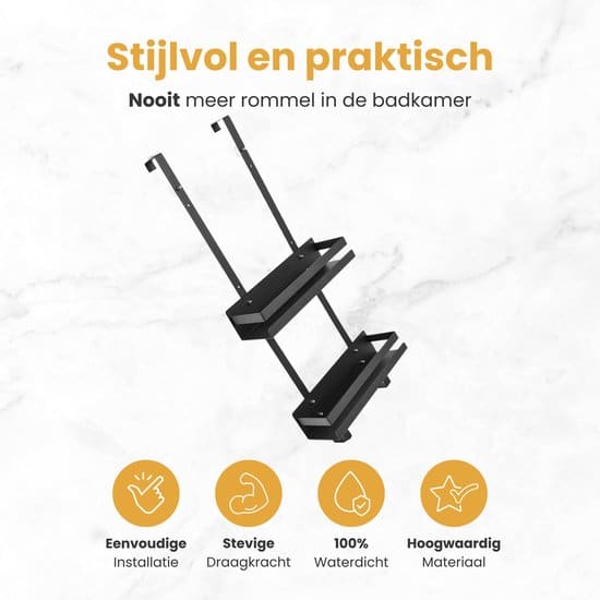 Je dag eindelijk zonder stress beginnen met de handige doucherek. Geen boorgaten in de muur? Het douchrek is namelijk speciaal ontworpen om aan de douchewand te hangen. Het doucherek is geschikt voor iedere douchewand tussen de 0 en 4.5 cm. Het doucherek heeft zuignappen aan de achterkant van het rekje voor extra stevigheid. Het stijlvolle doucherek is in RVS uitgevoerd en heeft een zeer moderne en minimalistisch design.