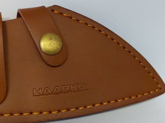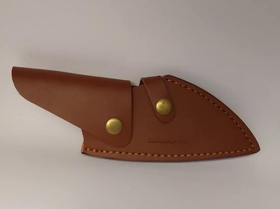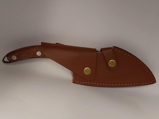 Samen met een bruin lederen etui met riem lus, heb je dit mes altijd bij de hand.