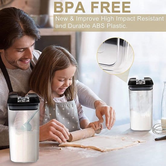 - ✮ VEELZIJDIGE VOORRAADPOTTEN KEUKEN – VEEL GEBRUIKSMOGELIJKHEDEN: Deze luchtdichte voedselveilige keukenpotjes zijn niet alleen IDEAAL voor het bewaren van droge voedingsmiddelen, zoals bloem, suiker, rijst, graan, ontbijtgranen, noten, bonen, snacks, pasta, koffie en thee, maar zijn ook PERFECT voor het bewaren van vloeibare voedingsmiddelen, zoals water, sap, soep en meer. Zonder zorgen over lekken, gewoonweg de hendel naar beneden duwen en beleef de magie van de luchtdichte technologie.