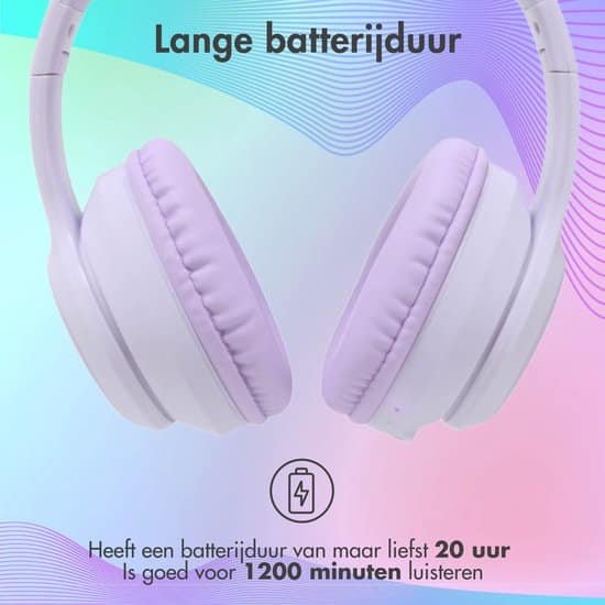 Luister met optimaal plezier naar jouw favoriete muziek dankzij de LED Light Bluetooth Headphones! De leuke koptelefoon is uitgerust met sfeervolle LED verlichting. De koptelefoon van iMoshion heeft een goede geluidskwaliteit en is veilig voor de oren van kinderen. Dankzij de extra zachte oorschelpkussens die over het gehele oor vallen, wordt geluid uit de omgeving gedempt. Zo kun je ongestoord genieten van je favoriete muziek, film of volledig concentreren op je huiswerk. Dankzij het draadloze design kunnen de kinderen met de koptelefoon lekker blijven rondlopen, spelen of dansen door de hele kamer. De koptelefoon heeft een bereik tot wel 10 meter! De headphones zijn gemakkelijk te verbinden via bluetooth met je smartphone, tablet of laptop. Ook is de koptelefoon ontworpen met een aanpasbare hoofdband, zo heeft deze voor iedereen de perfecte pasvorm. Dankzij de afspeeltijd van 20 uur, kun je urenlang genieten van je favoriete muziek!