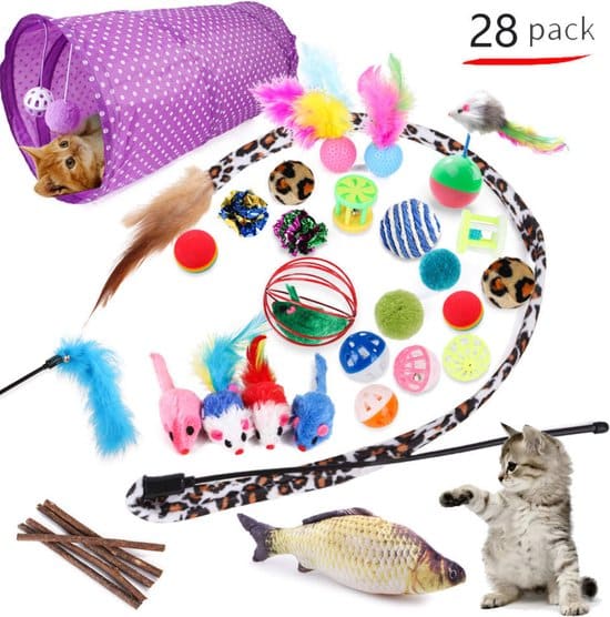 Hét perfecte Kattenspeeltjes set! Met de 28 verschillende speeltjes zorgt het ervoor dat uw kat geprikkeld wordt door de perfect samengestelde set om intelligentie te stimuleren, verveling tegen te gaan en je kat uit te dagen wat goed is voor het humeur van de kat!