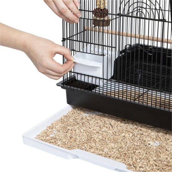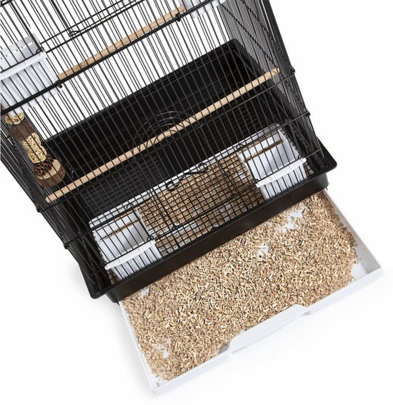 Inclusief: 3 houten zitstokken, vier voer-/drinkbakjes, veiligheidsgrill