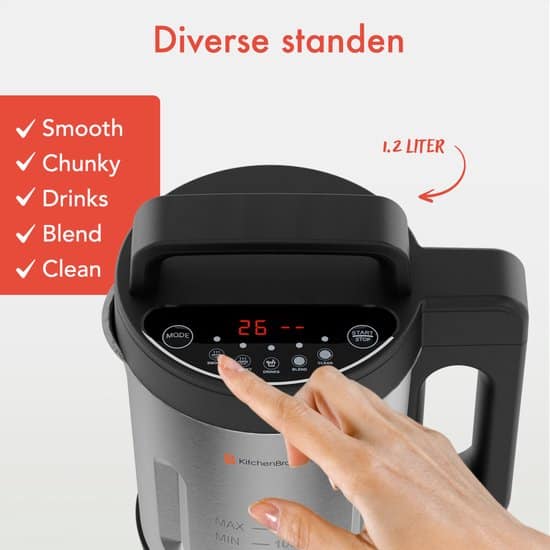 12 beoordelingen voor KitchenBrothers Soepmaker – 1.2L – 5 Programma’s – Timer Display – Blender – RVS/Zwart