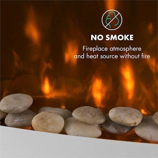 De Lausanne elektrische haard van Klarstein tovert met zijn opmerkelijke vlammeneffect een romantische, sfeervolle ambiance tevoorschijn – zonder echt vuur, as of rook. Naar wens kun je de verwarming aanzetten, die binnen een paar minuten voor een behaaglijk warme omgeving zorgt. Je hoeft niet eens te bewegen: Je kunt de glazen haard ook bedienen met de meegeleverde afstandsbediening. Naast het flikkerende vlammenspel zorgen de dimbare, 7-kleurige achtergrondverlichting voor prachtige effecten en brengen de decoratieve stenen voegen een stukje ongekunstelde natuur toe aan het kunstmatige vuur.
